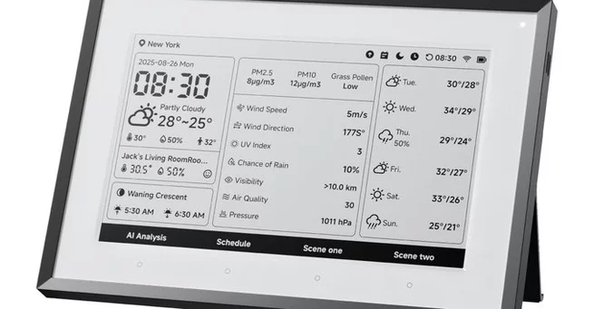 Weather enthusiasts have a new gadget to get excited about. SwitchBot’s latest Weather Station, revealed at CES 2026, combines a sleek 7.5-inch E Ink display with smart sensors to track indoor temperature, humidity, and more. The device delivers a full suite of weather data—including date, time, a six-day forecast, and sunrise and sunset times—making it a one-stop station for anyone who loves staying informed about the climate around them. Curious users can access AI-powered suggestions, making even routine weather updates feel interactive.
