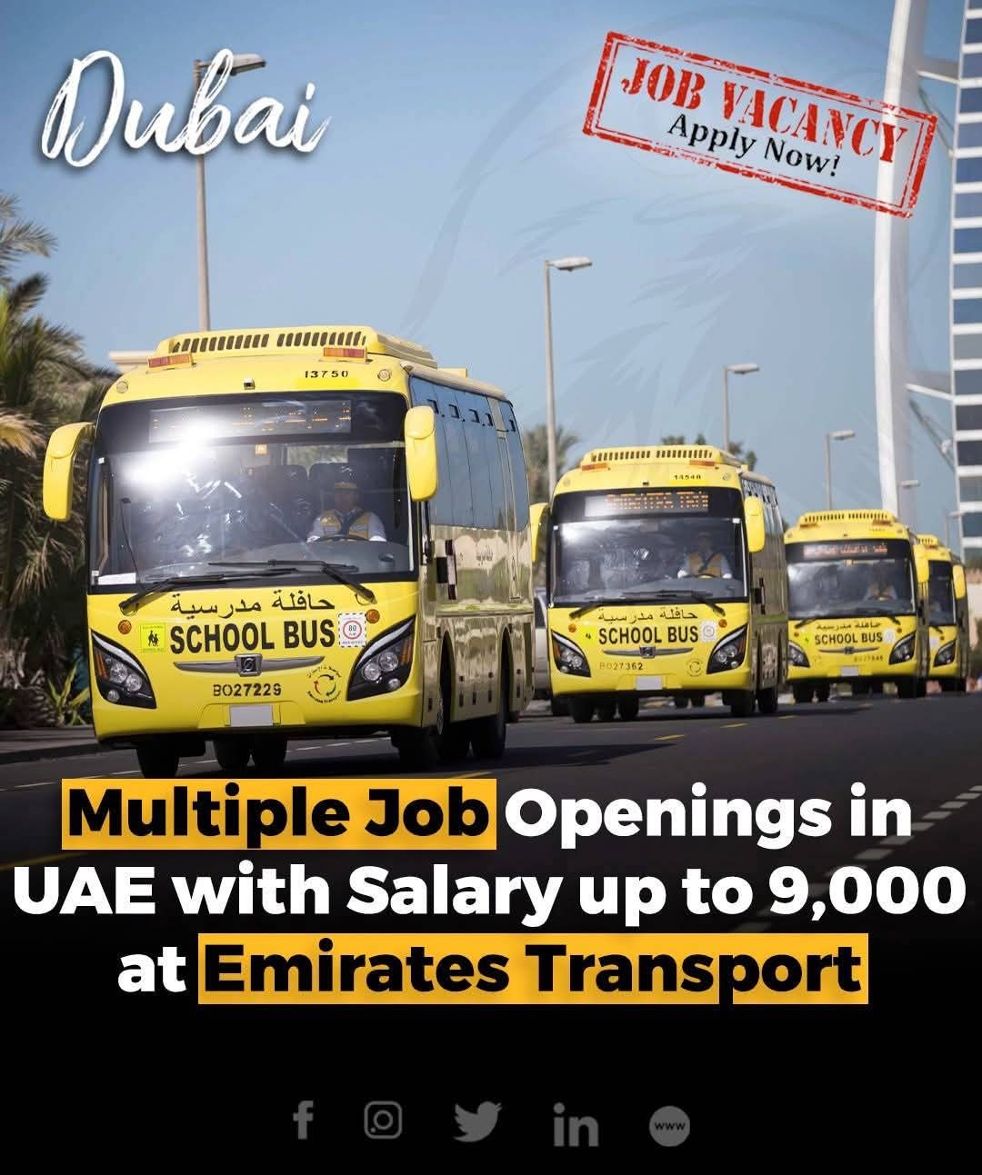 Emirates Transport is Hiring Multiple Job Openings in UAE with Salary up to 9,000 Dirhams per month + Benefits